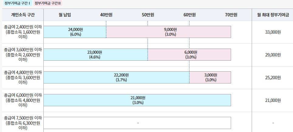 💸 정부 기여금: 소득에 따라 매달 최대 약 3.3만원 지원